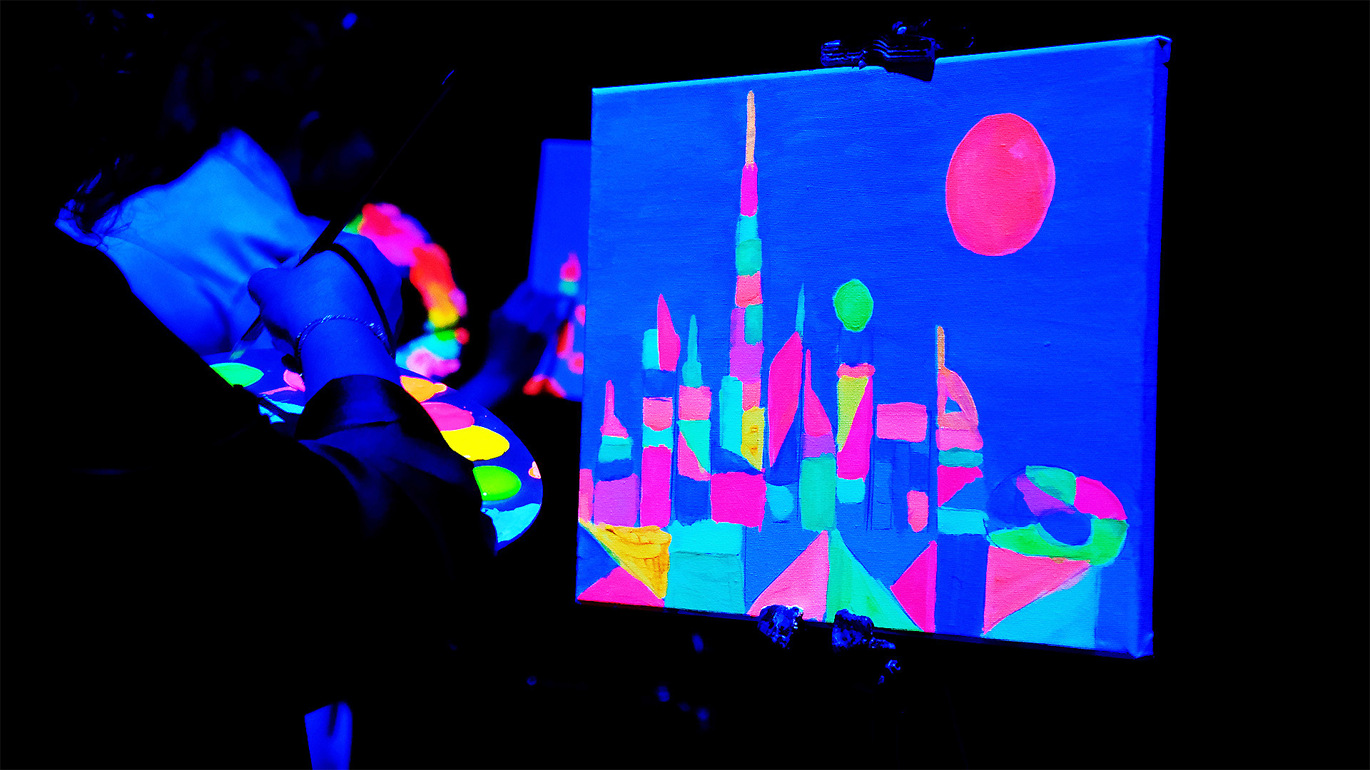 Glowing Brushstroke: The Immersive We Love Art Painting Experience at Infinity des Lumières: Paint a Paul Klee inspired Dubai Skyline