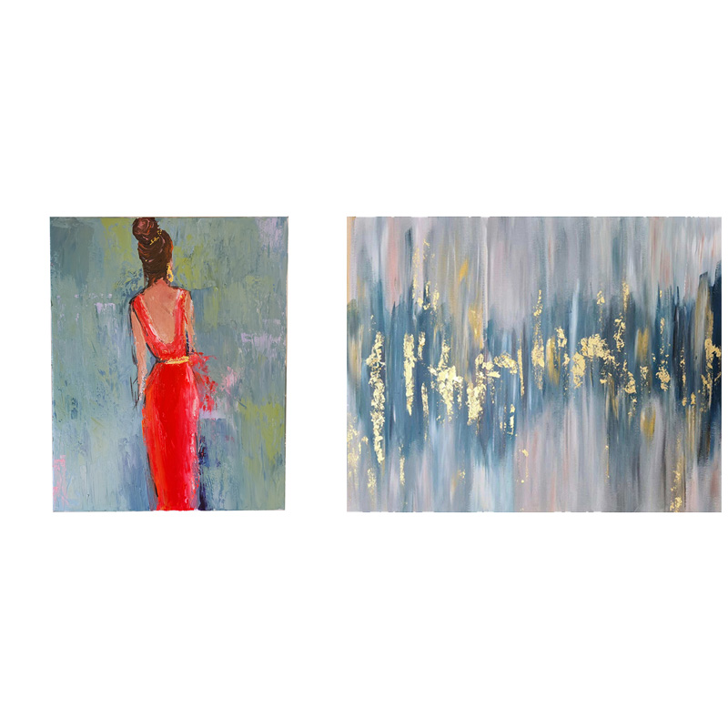 - The paintings will be “Abstract Art and Lady in Red” for this event.