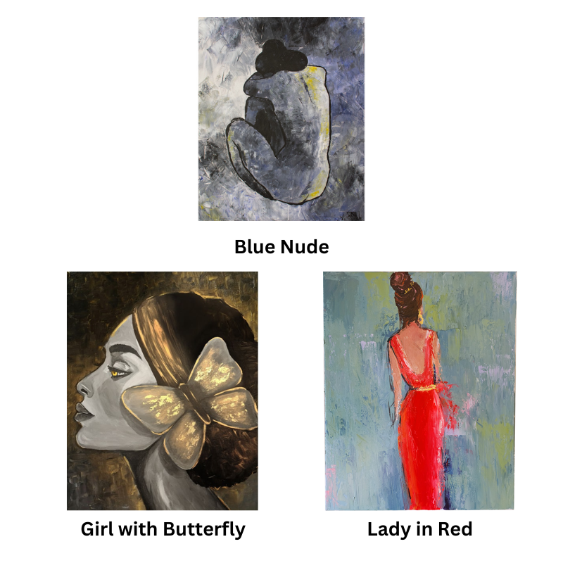 Paint and Grape Event – Blue Nude, Lady in Red, Girl with Butterfly