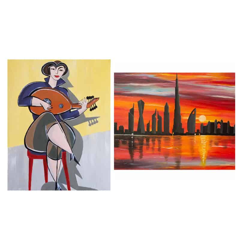 - NOTE: For this Paint & Grape, you have the option of choosing between two painting options: Dubai Skyline OR Music Player. Choose your preferred painting before check out.