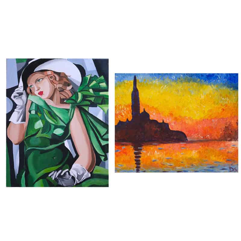 The price: The price: is 390 AED which includes 5% VAT per person for 3 hours tuition to complete a masterpiece for you to take home, including all painting materials and a pre-sketched canvas. Indulge in one cup of tea and a choice between two glasses of wine or prosecco. We advise booking well in advance as spaces are limited.