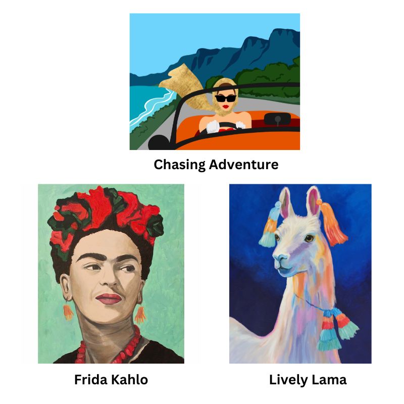We advise booking well in advance as spaces are limited. The painting options for Lama, Frida, Chasing Adventure (with gold leaf)
