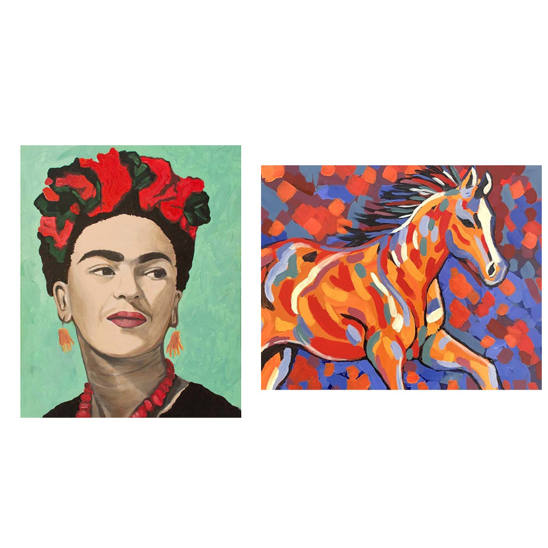 We advise booking well in advance as spaces are limited. The painting options for this event are Frida Kahlo & Vibrant Horse.