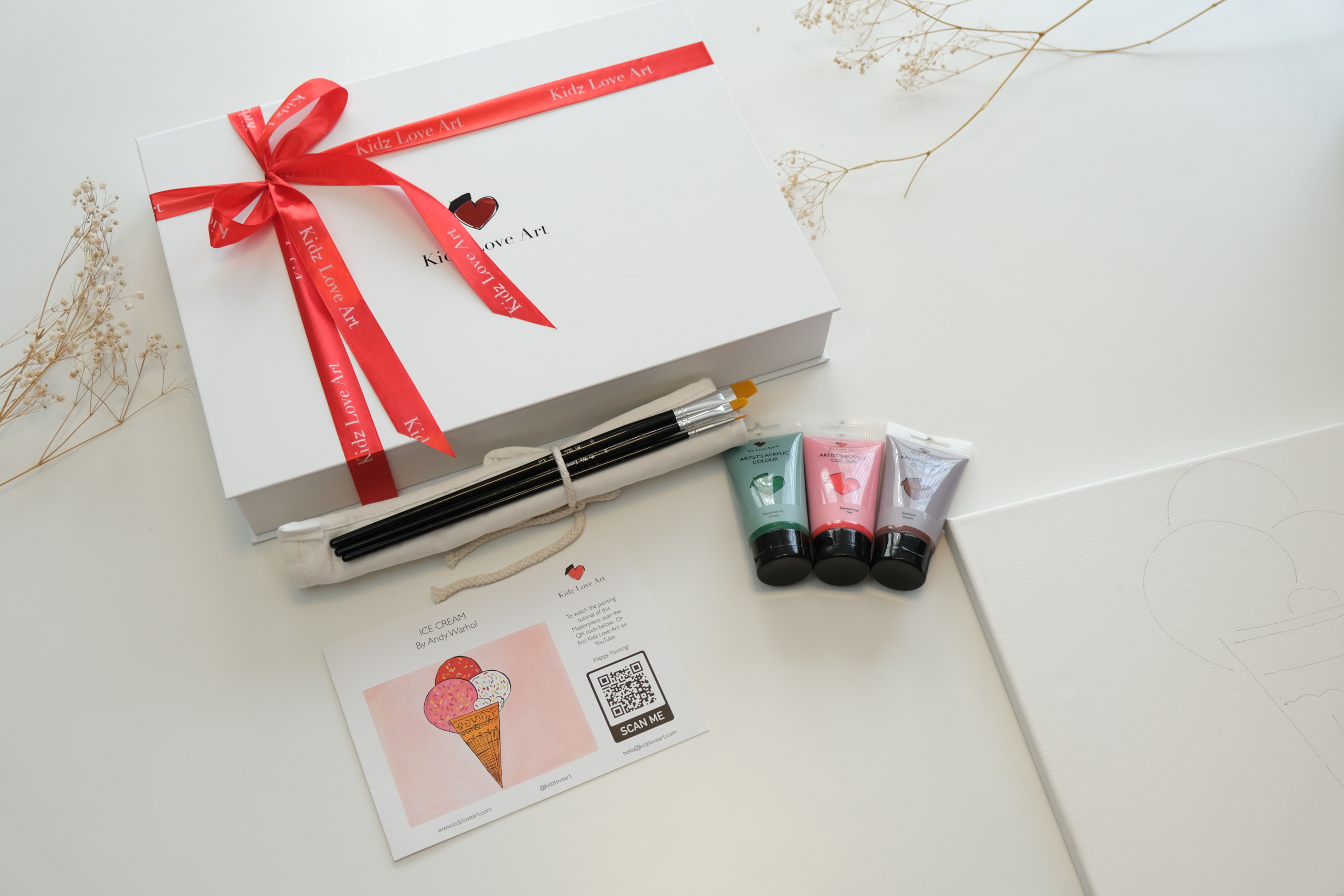 - Three Kidz Love Art branded paint brushes with nylon heads in all the sizes and shapes you need to paint this masterpiece; Having had tens of thousands of people experience We Love Art, we understand the ideal brush for you